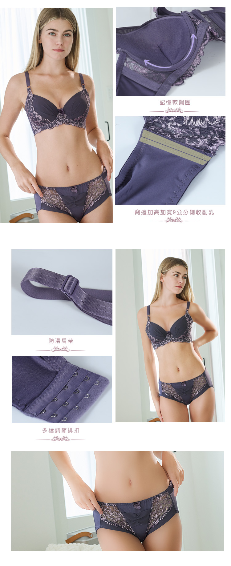 脅邊高約9.5公分完整包覆背肉、副乳,特殊設計加強集中、提托