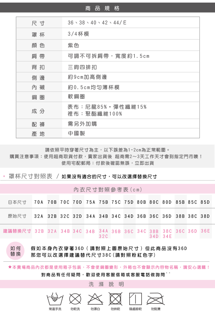 尺碼內衣。